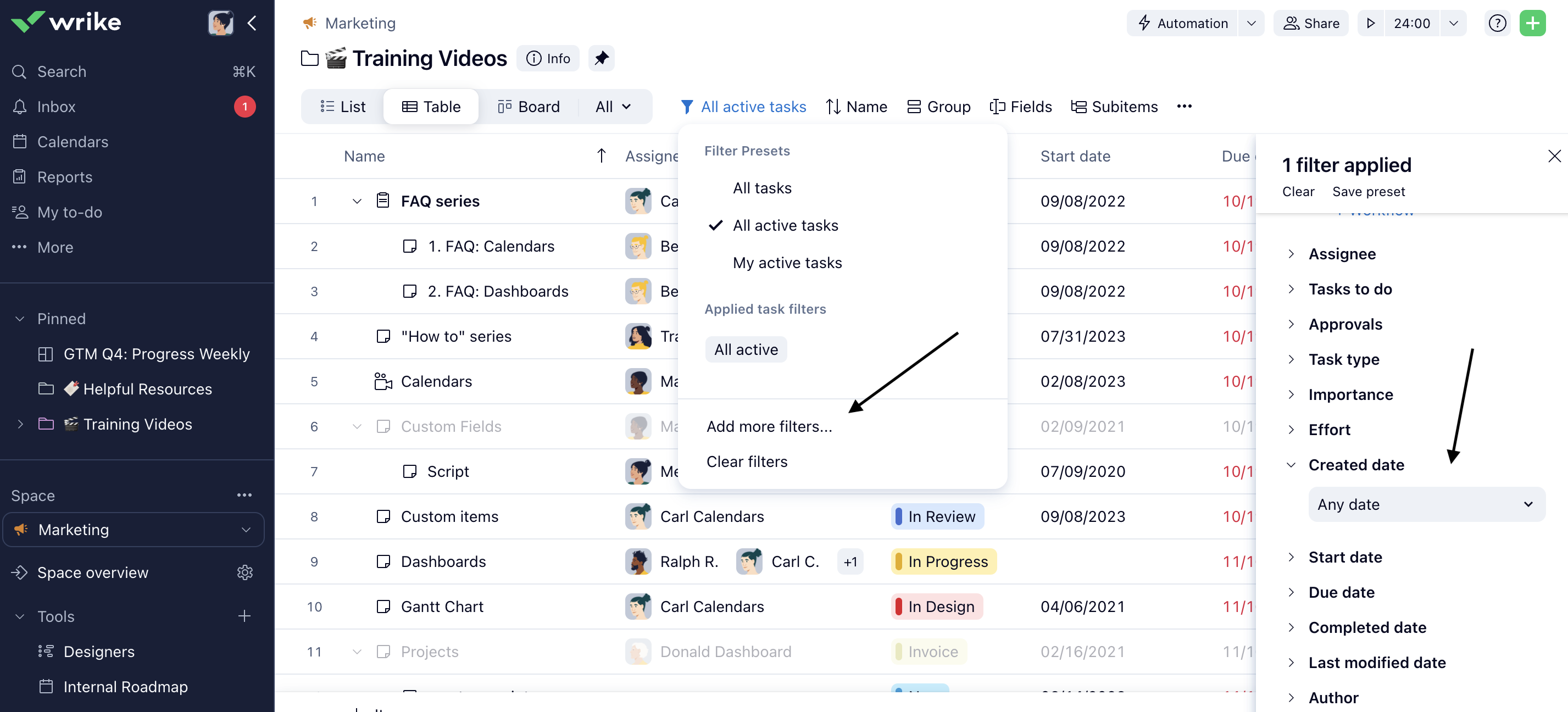 1. Create tasks and subtasks in list view. Ideally you would update this so that when I create tasks in order that they need to be completed it creates task as 1, 2, 3 and not 3, 2,1. For example, if I'm thinking through a list of subtasks, I create them as I walk through the tasks in my mind. But when you add tasks back to back in Wrike, it puts the most recent task you create on the top of the list instead of under the first task you created. So basically you have to re-order them or think backwards.
