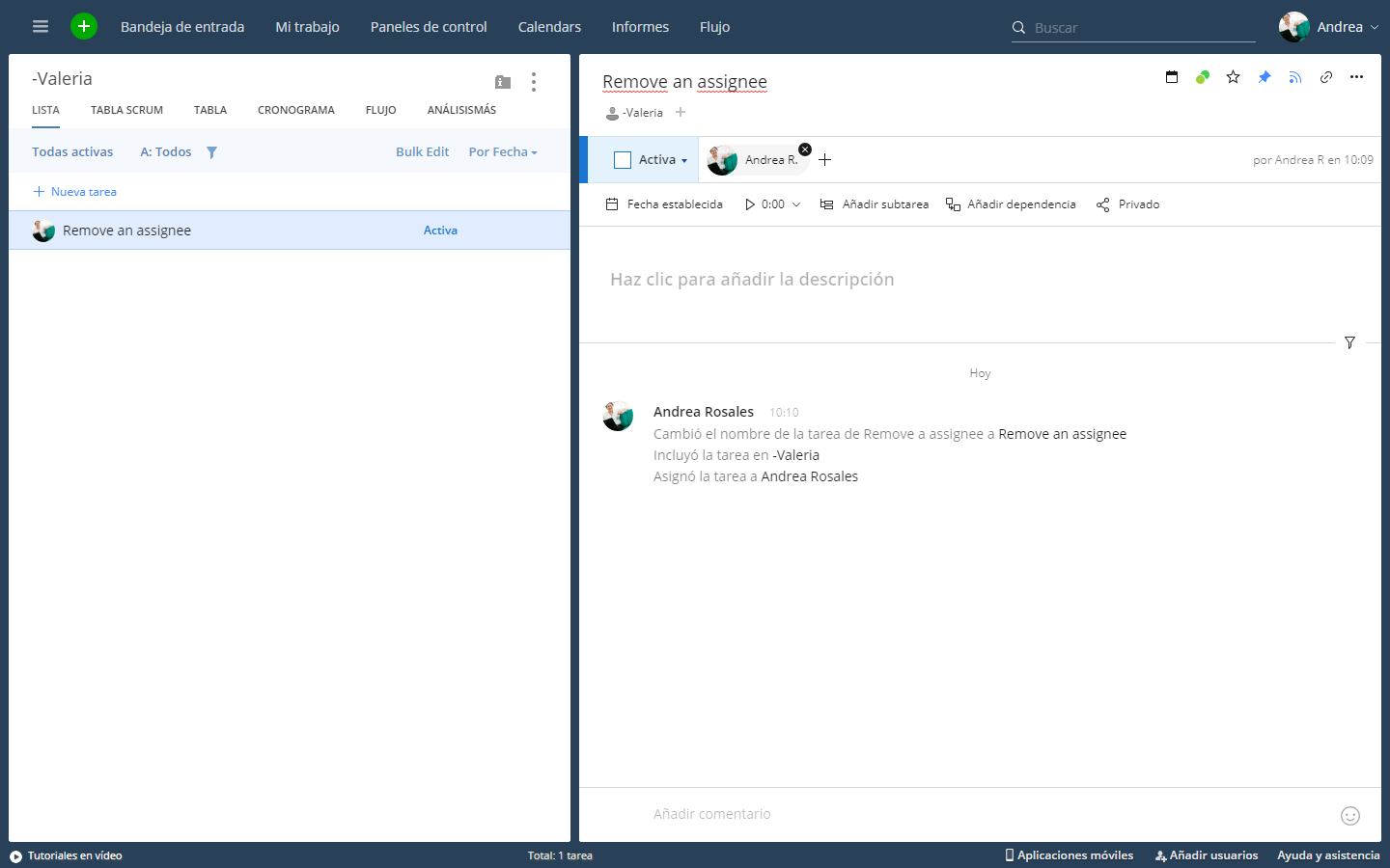 Or click on the task on the LIST VIEW and select the option "remove the assign from everyone"