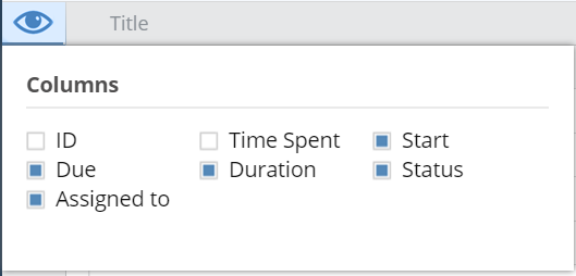 In the table view there is currently a gear icon that once clicked on gives you a way to turn on/off visibility of columns. It currently looks like this: