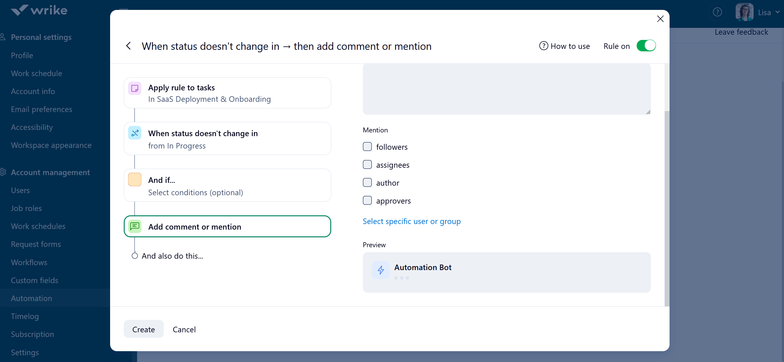 To use the automation rule, I'd need to tag myself [coworkers get notifications of this] before automation bot replies with the reminders [coworkers get notifications of this]. It's not uncommon to have up to a dozen people assigned to a task for informational purposes, which results in a massive amount of spam being sent for a simple reminder.