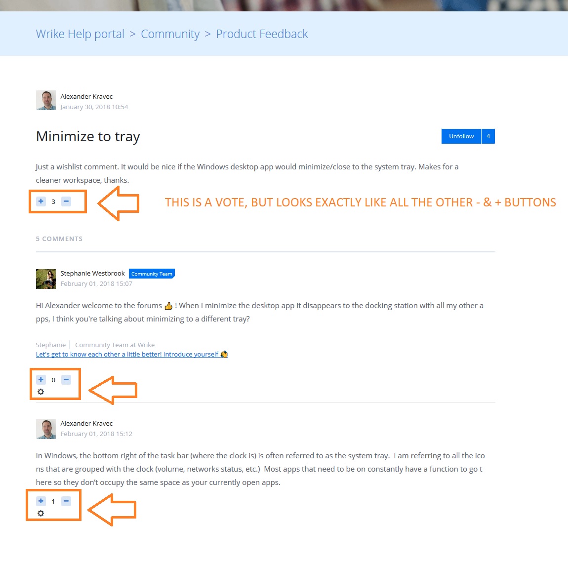 When you are inside an idea, it is unclear if the - & + signs are for votes, since every comment has the exact same sign.