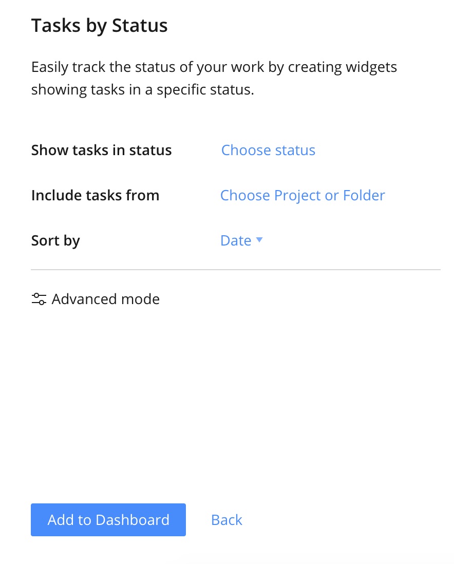 There is a Widget template in Dashboards that allow you to create a list of tasks by a certain status. To see everything in this status in a certain Folder you need to look at the highest level Folder and select this when creating the widget. This means everything from there down will be included in the widget which meets the status.