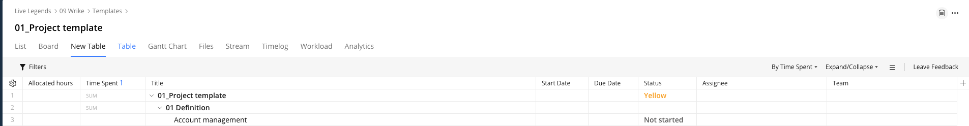We defined a table view (new labs table) that works for all projects we do. Attached you'll find a screenshot of the table view from our project template.