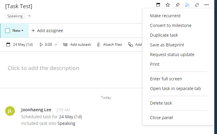 HI guys, yes it's not on that dialog box. By now you might have noticed it's now an option in your task options(three dots on the top right-hand side of the task).