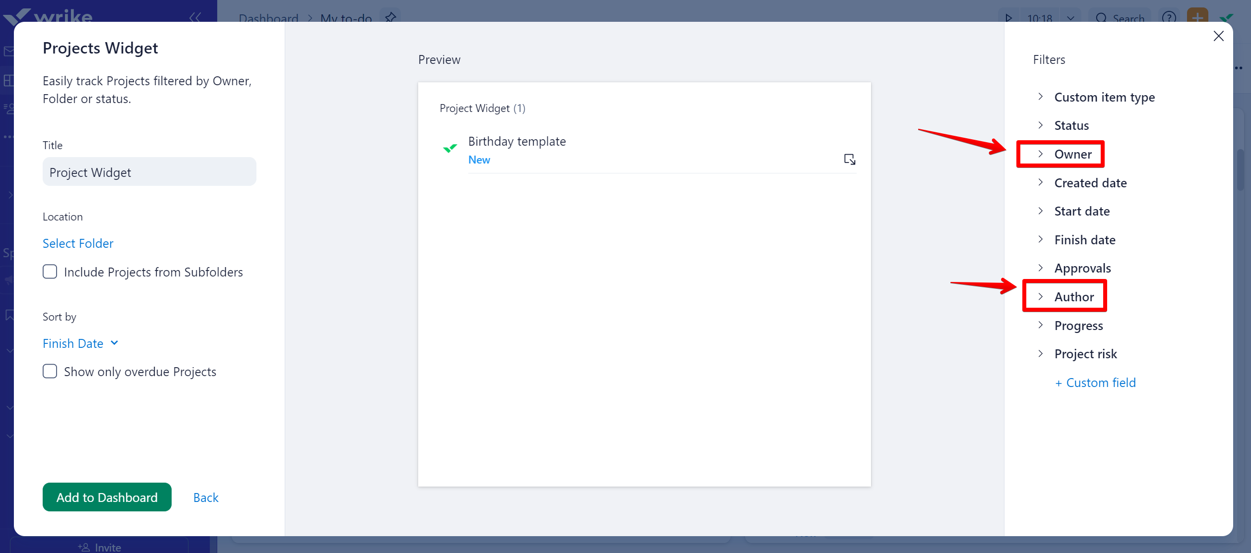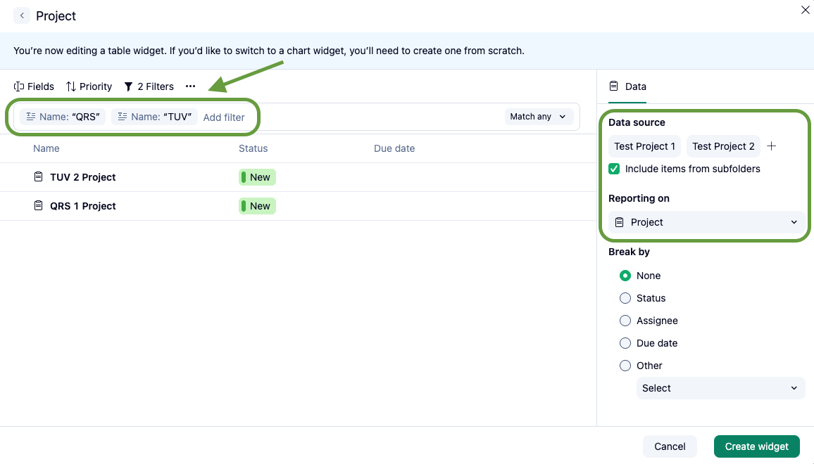 [Duplicate] Ability to create a dashboard widget that filters by projects AND tasks