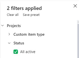 To filter out the completed projects, click on ‘All active tasks”, then select “Add more filters”.