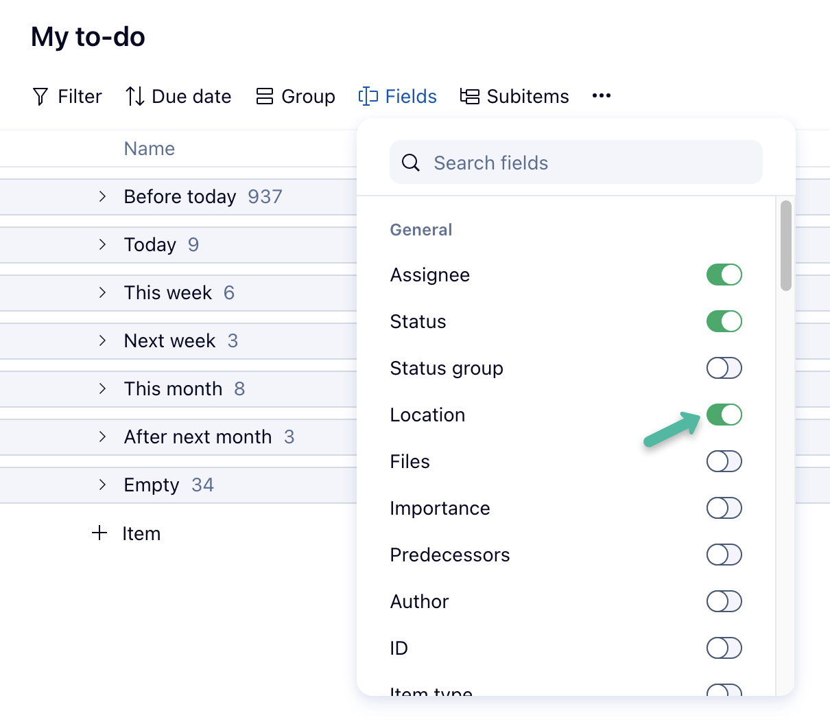 Lisa after toggling on the location field, is there a way to save that setting or make it your default? This is a very key field and our team finds it very odd/frustrating to have to toggle it on every time My To-Do is used.