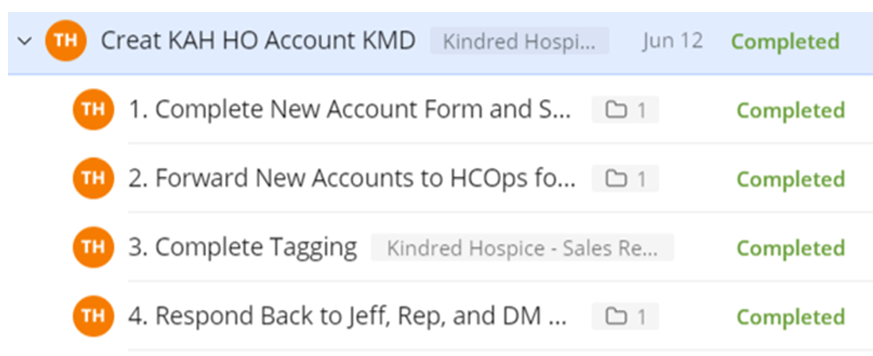 Can they rollup to the project name to look like below? This screenshot was done by manually creating tasks but when a project is created, the tasks beneath it just become listed