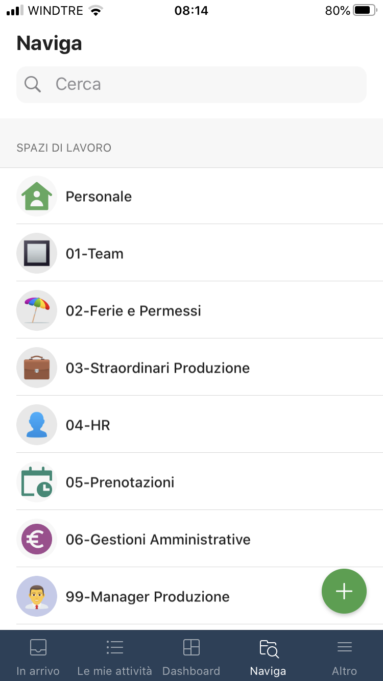 Here is the browse screen (I can see all my workspaces). I need to look for a project which is contained in the "99-Managers Produzione" workspace.
