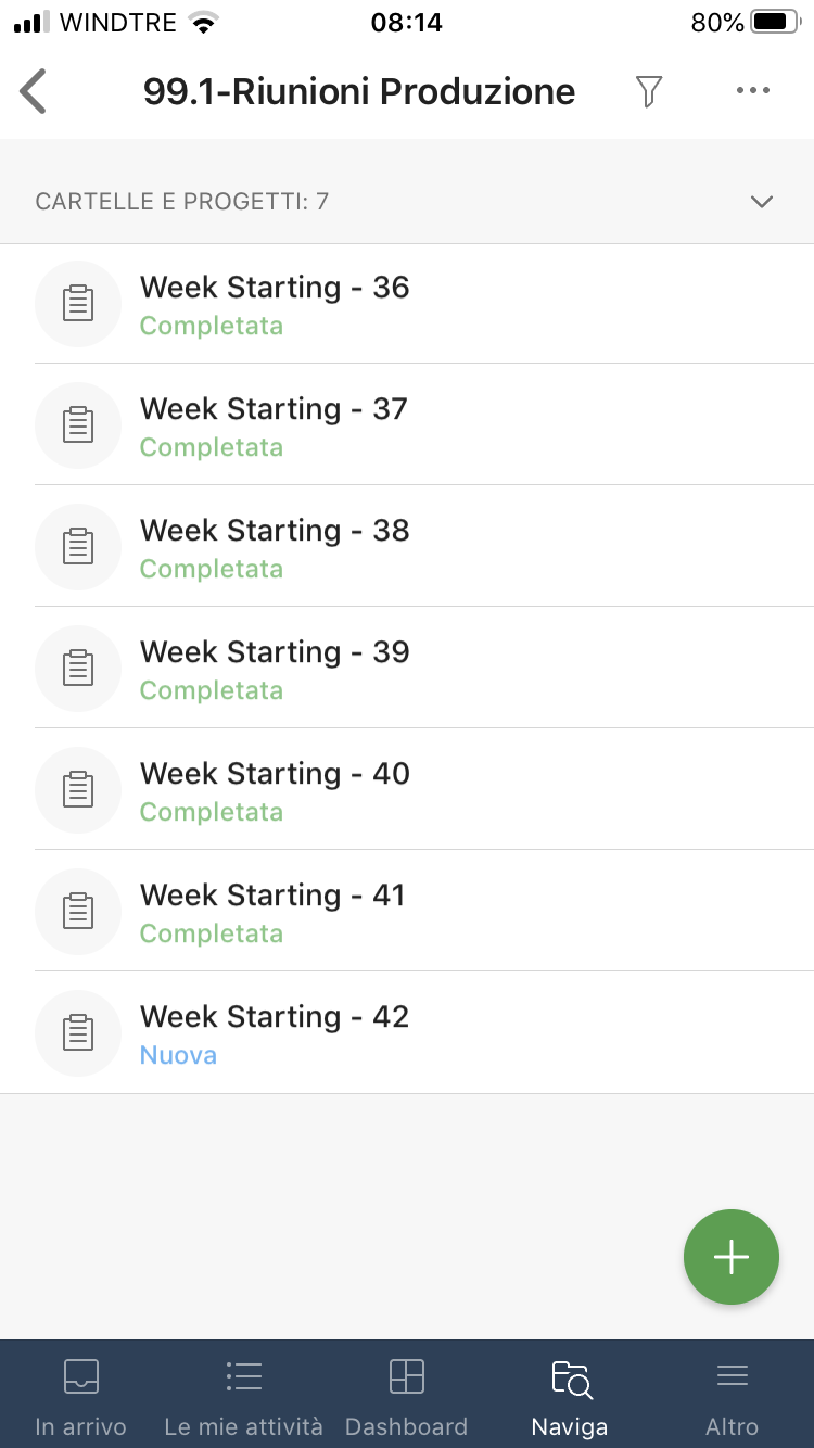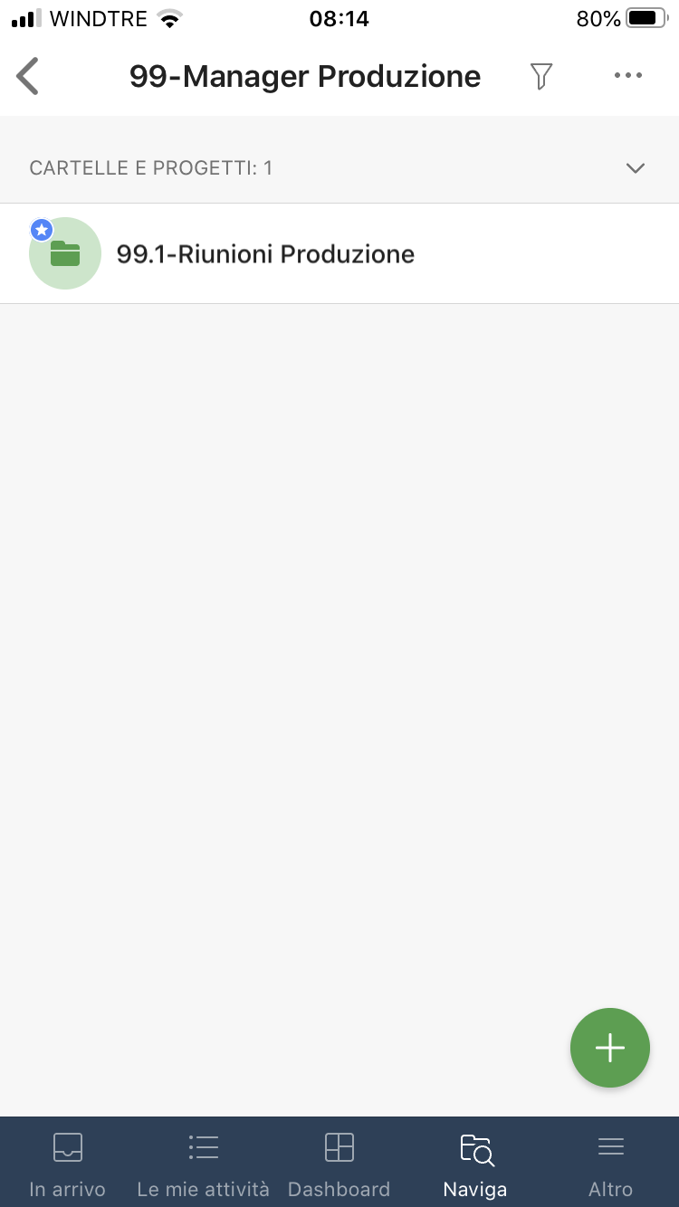 Here is what I see when I open the 99-Manager Produzione workspace. The folder named 99.1-Riunioni Produzione is shown. That is correct.