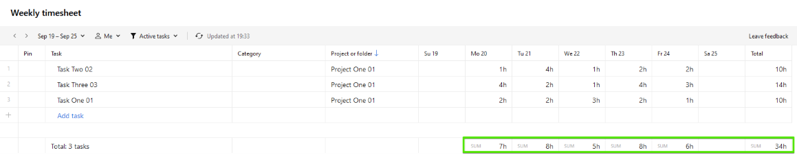 Would be very nice to have daily total (vertical total) in Timesheets. We need this more than a task total (horizontal)