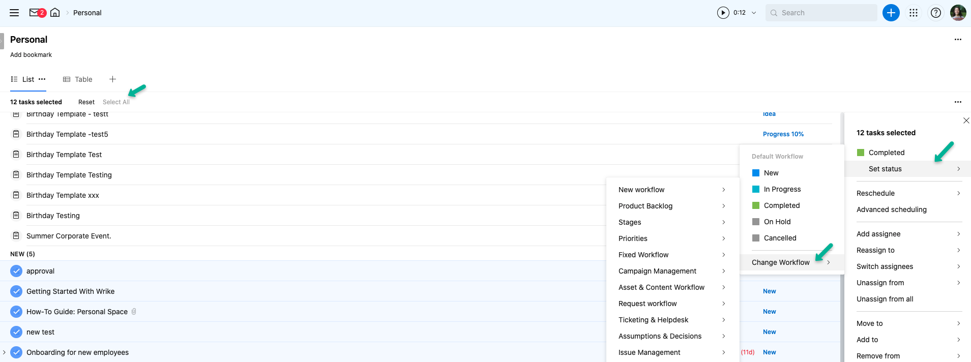 my team and I are organizing our work via Wrike, which works great. There is one shortcoming for my work: I would like to apply our team workflow to my personal space in order to have my dashboard shown with all the same workflows. The workaround with selecting the workflow each time I add a to-do is a bit cumbersome.