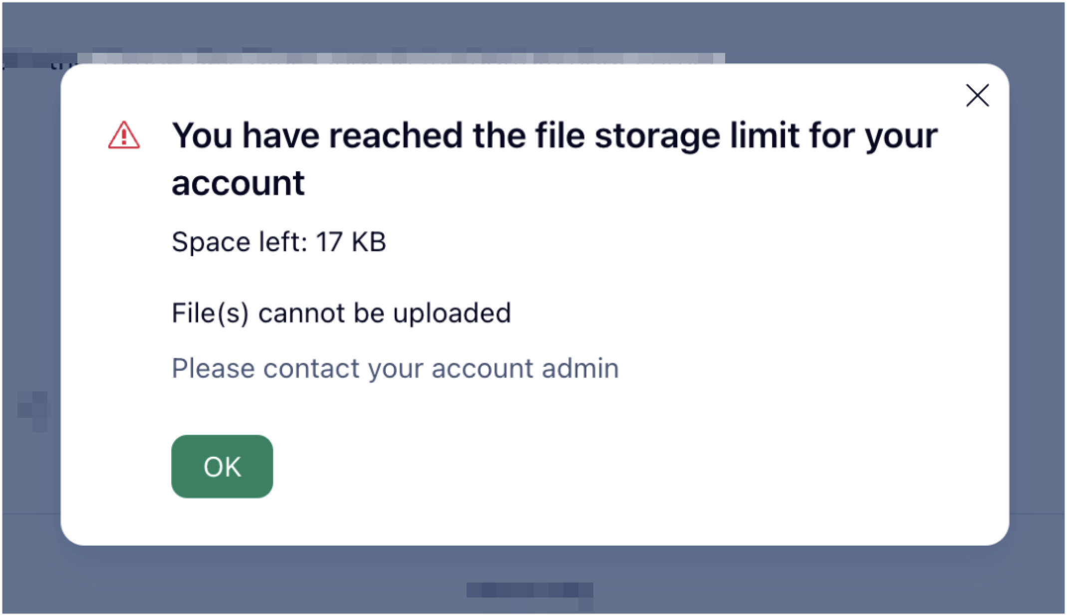 Владелец аккаунта имеет доступ к информации о подписке и пространстве в настройках управления аккаунтом на вкладке «Подписка». Если вы видите всплывающую ошибку, но не имеете доступа к вкладке «Подписка», попросите владельца аккаунта проверить доступное пространство.